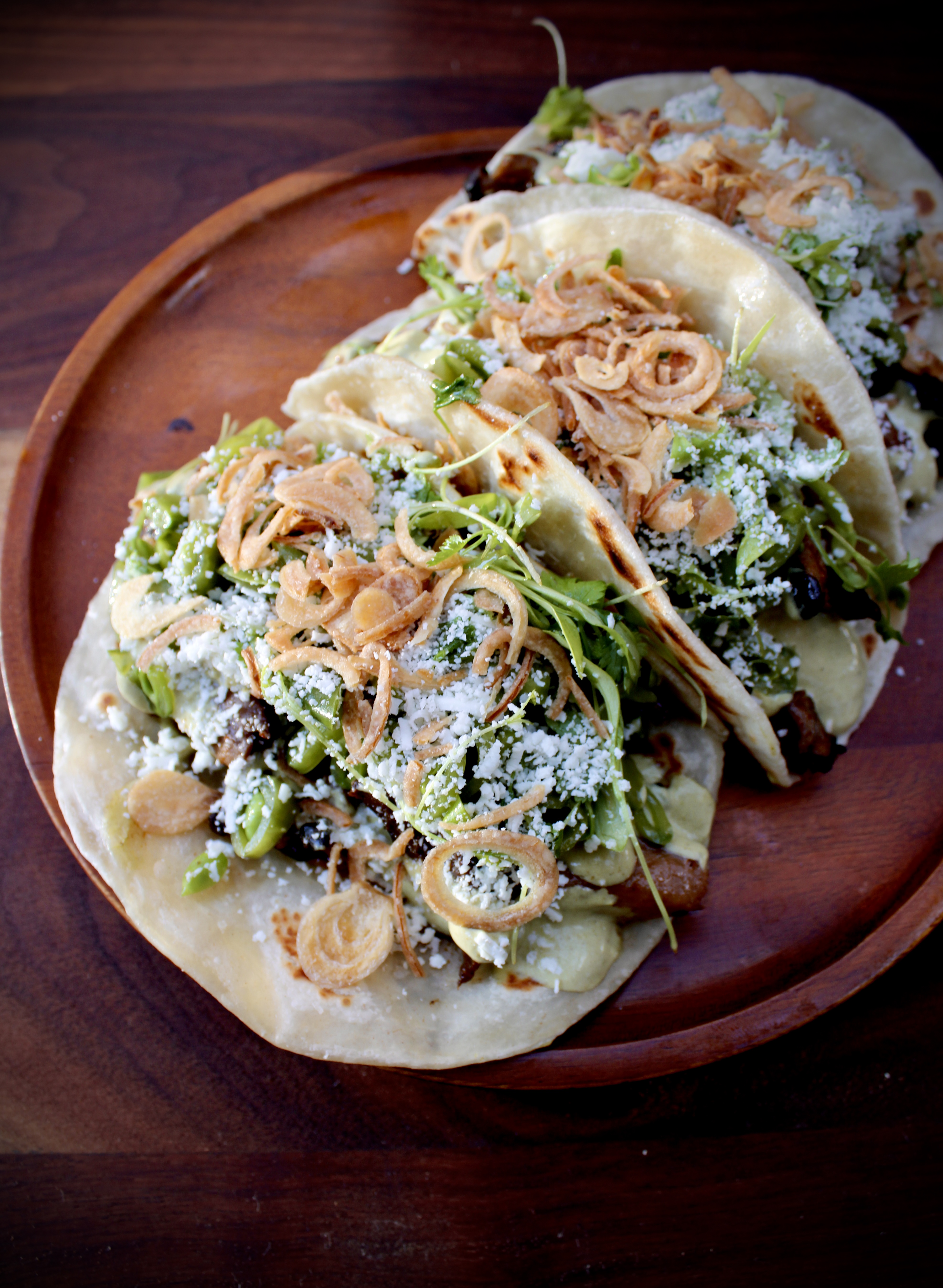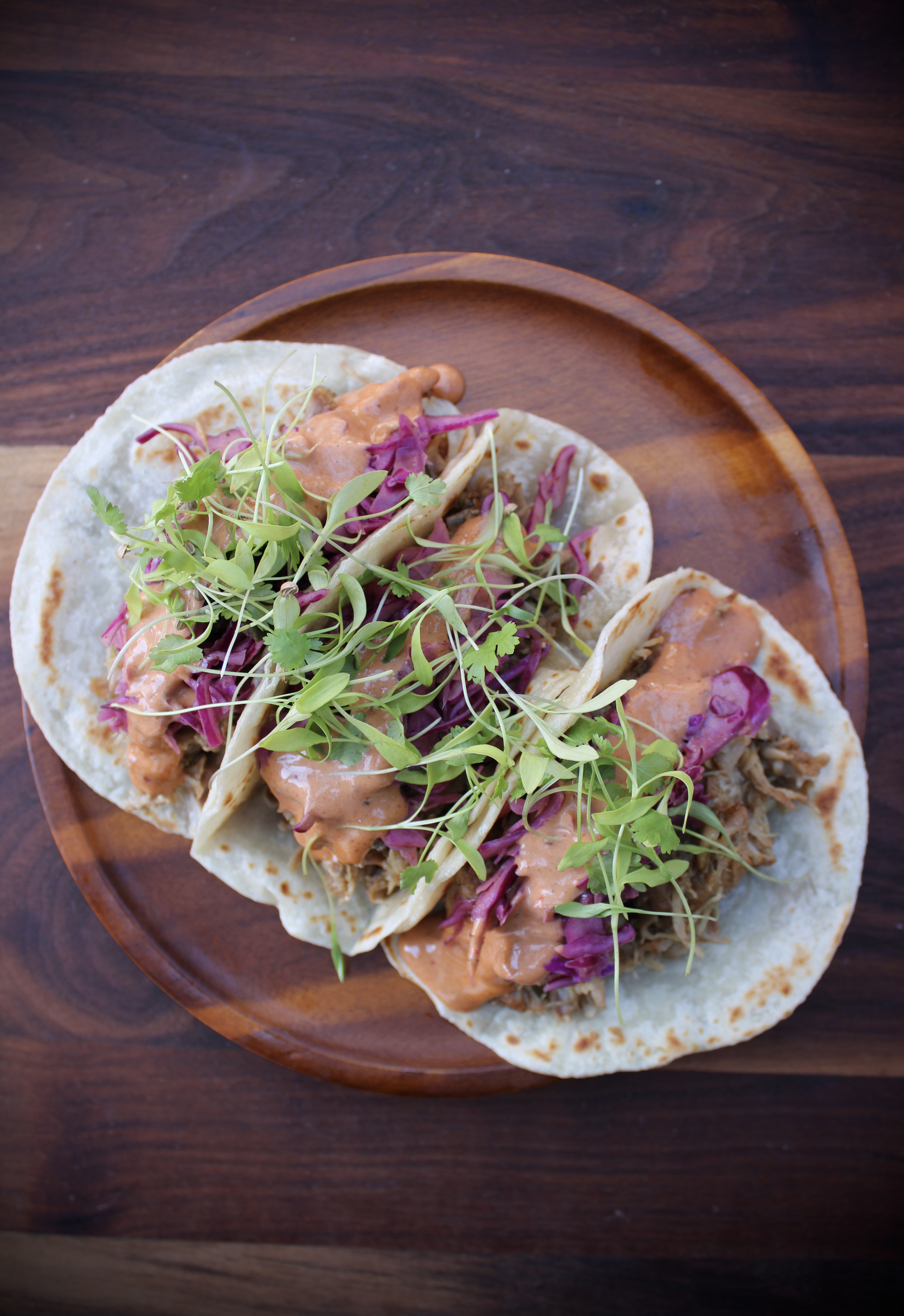Pork carnitas, cabbage slaw, chipotle aioli, microgreens
