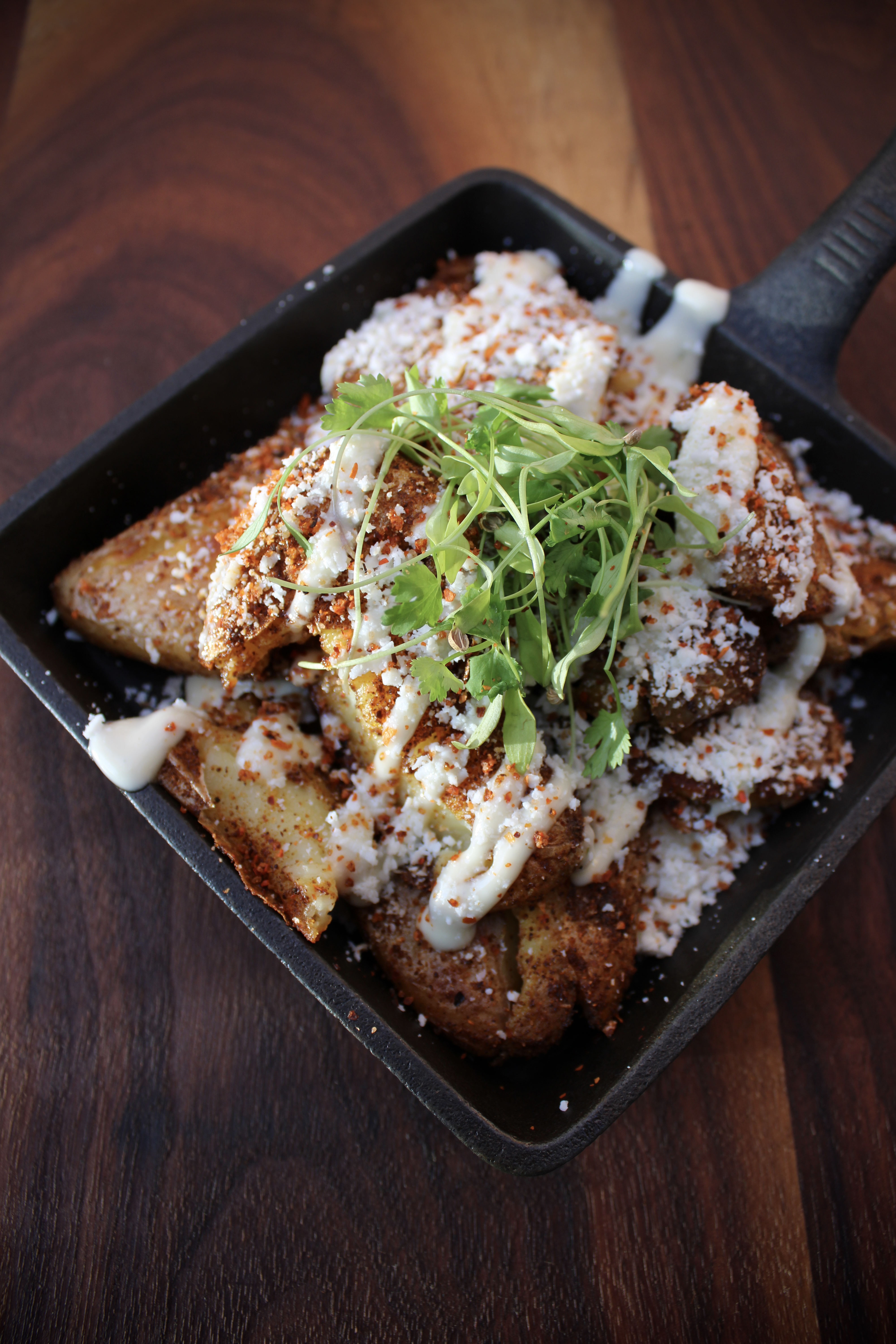 Crispy fiesta spiced fingerling potatoes with a garlic lime aioli.